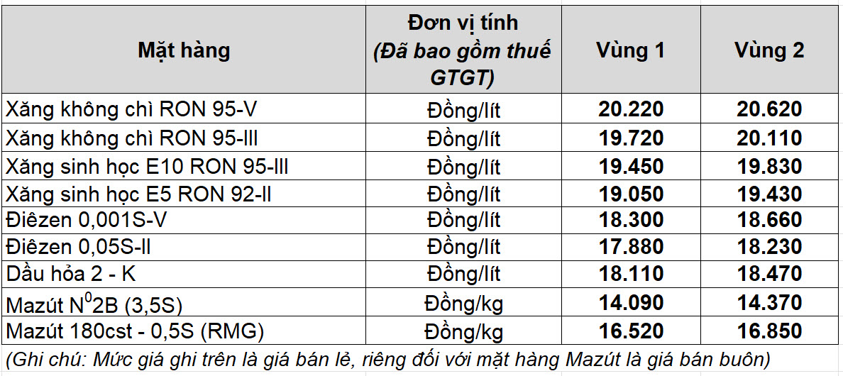 Mức giá mới có hiệu lực từ thời điểm 15 giờ 00 phút ngày 23 tháng 10 năm 2025 cho đến kỳ điều hành giá xăng dầu tiếp theo của liên Bộ Công Thương – Tài Chính; được công khai tại website petrolimex.com.vn và các Công ty xăng dầu thành viên Petrolimex.